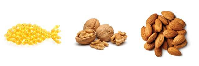 推荐食物:海鱼(鱼油)、核桃、松子、葵花籽、杏仁等。